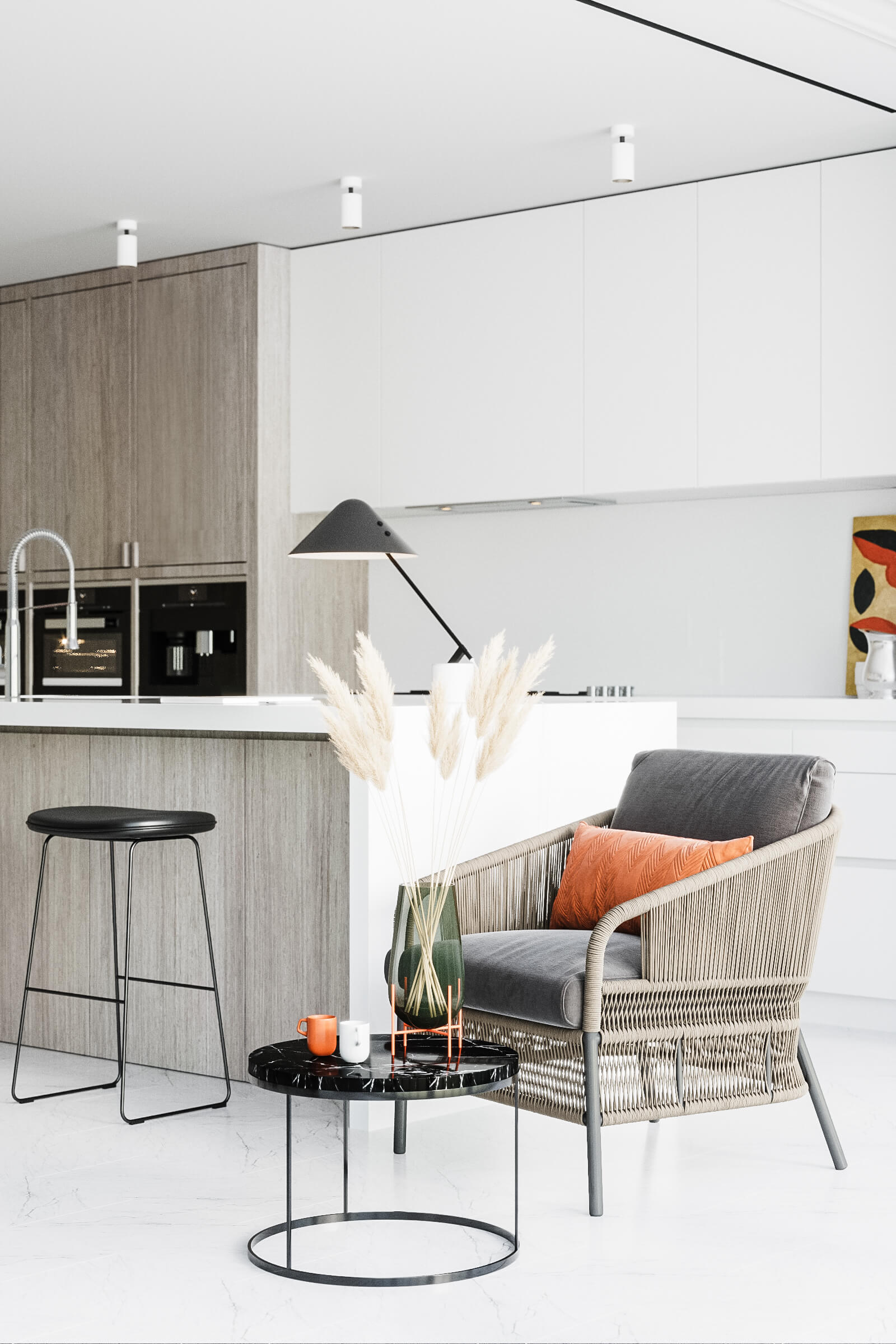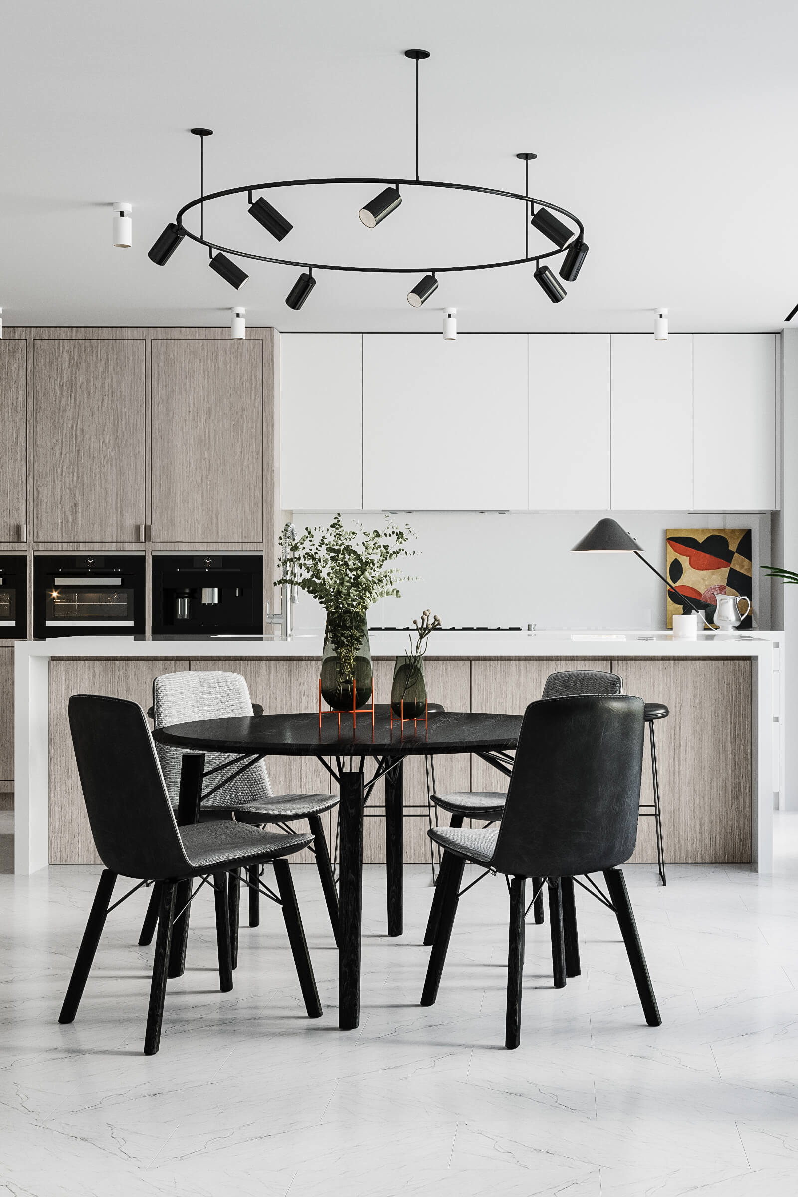 Для представленого проекту використовували на МДФ основу – модифікований шпон ДУБ МЕССІНА, з нової колекції шпонів 2019 року файн-лайн.