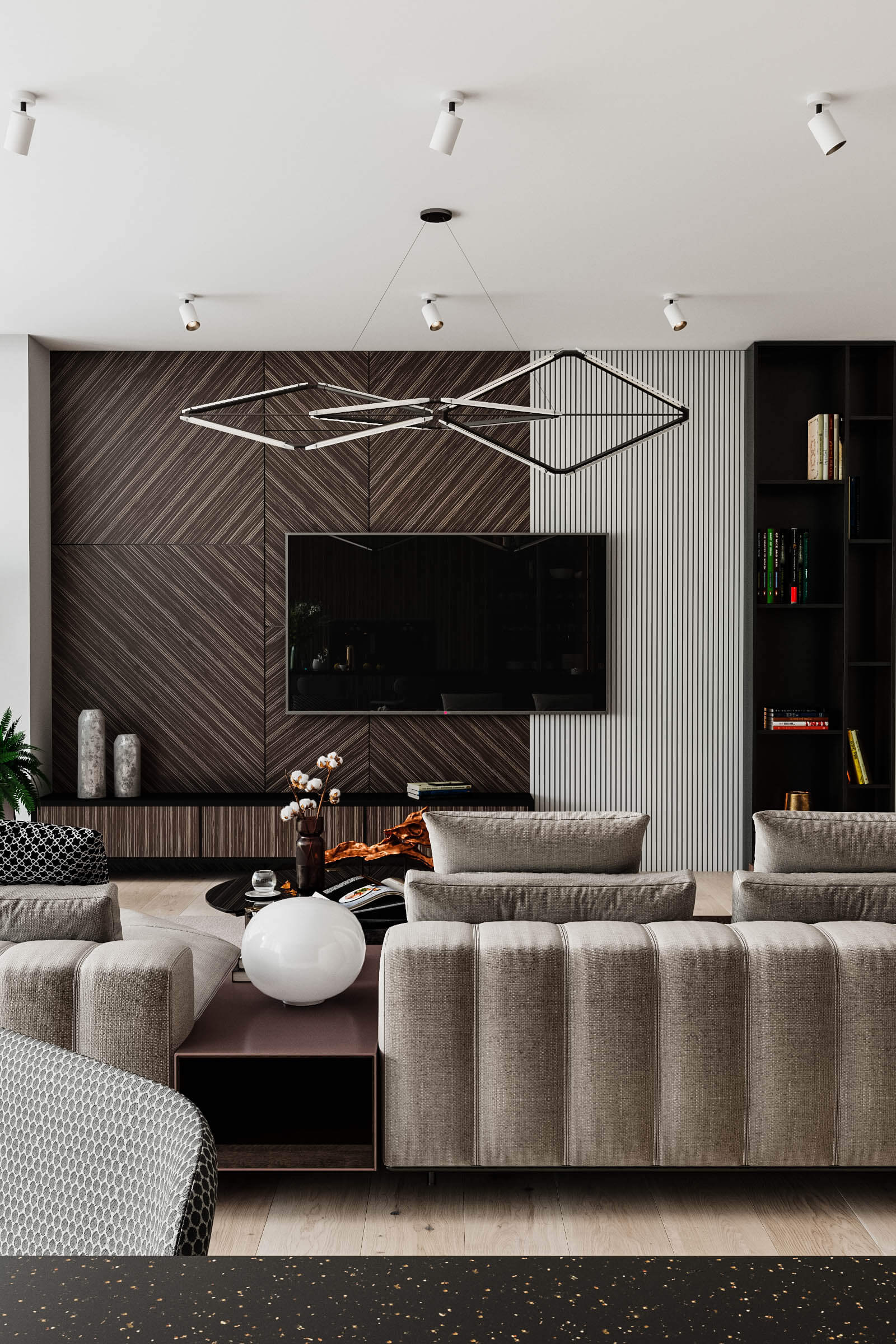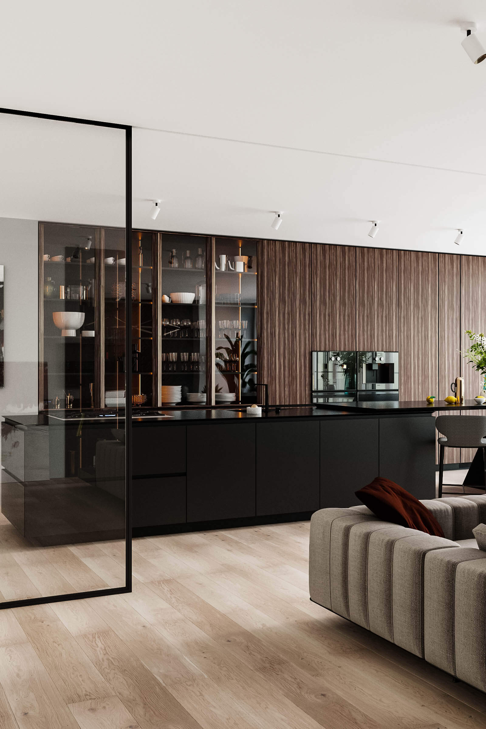 Інтер’єр об’єднаних просторих приміщень є одним з популярних прийомів дизайнерів. Сьогодні кожен може реалізувати свої задуми і створити гарний дизайн кухні суміщеною з вітальнею. Доповнення одного іншим, можуть бути: дерев’яні панелі, вбудовані меблі та декоративна стіна, як декоративна функція чи функція зонування. Барна стійка – може візуально розділяти простір, вносити упорядкованість між приміщеннями.
